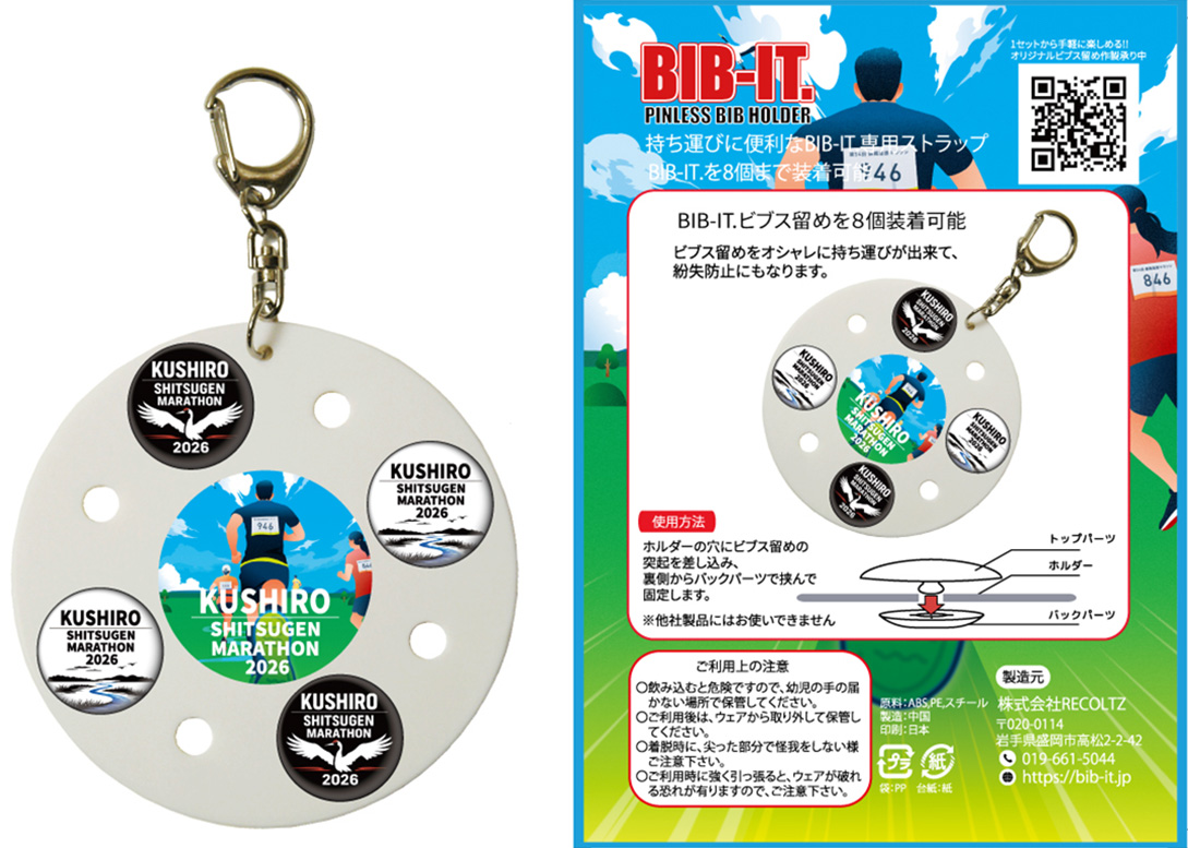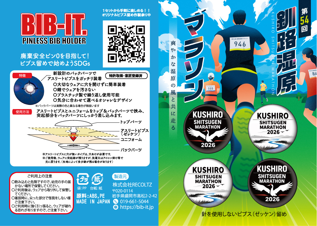 第54回釧路湿原マラソンでは、新たな取り組みとして大会公式ゼッケン留めと専用ホルダーを販売いたします。